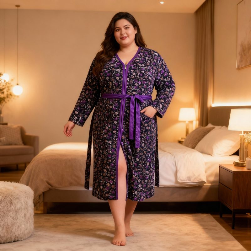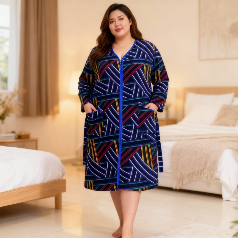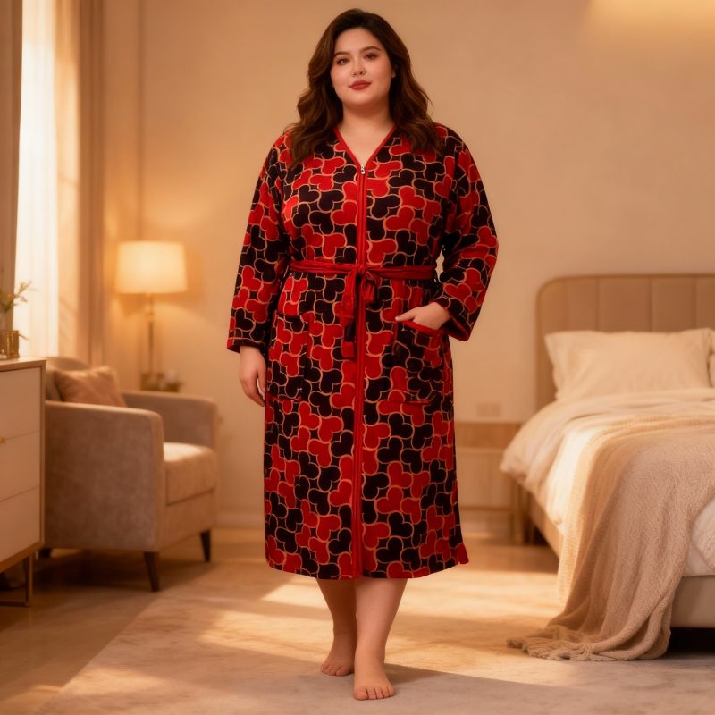 חלוק בית מחמם פלנל כותנה למידות גדולות