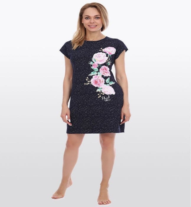טוניקה כחולה עם פרח סגול לקיץ במידות גדולות